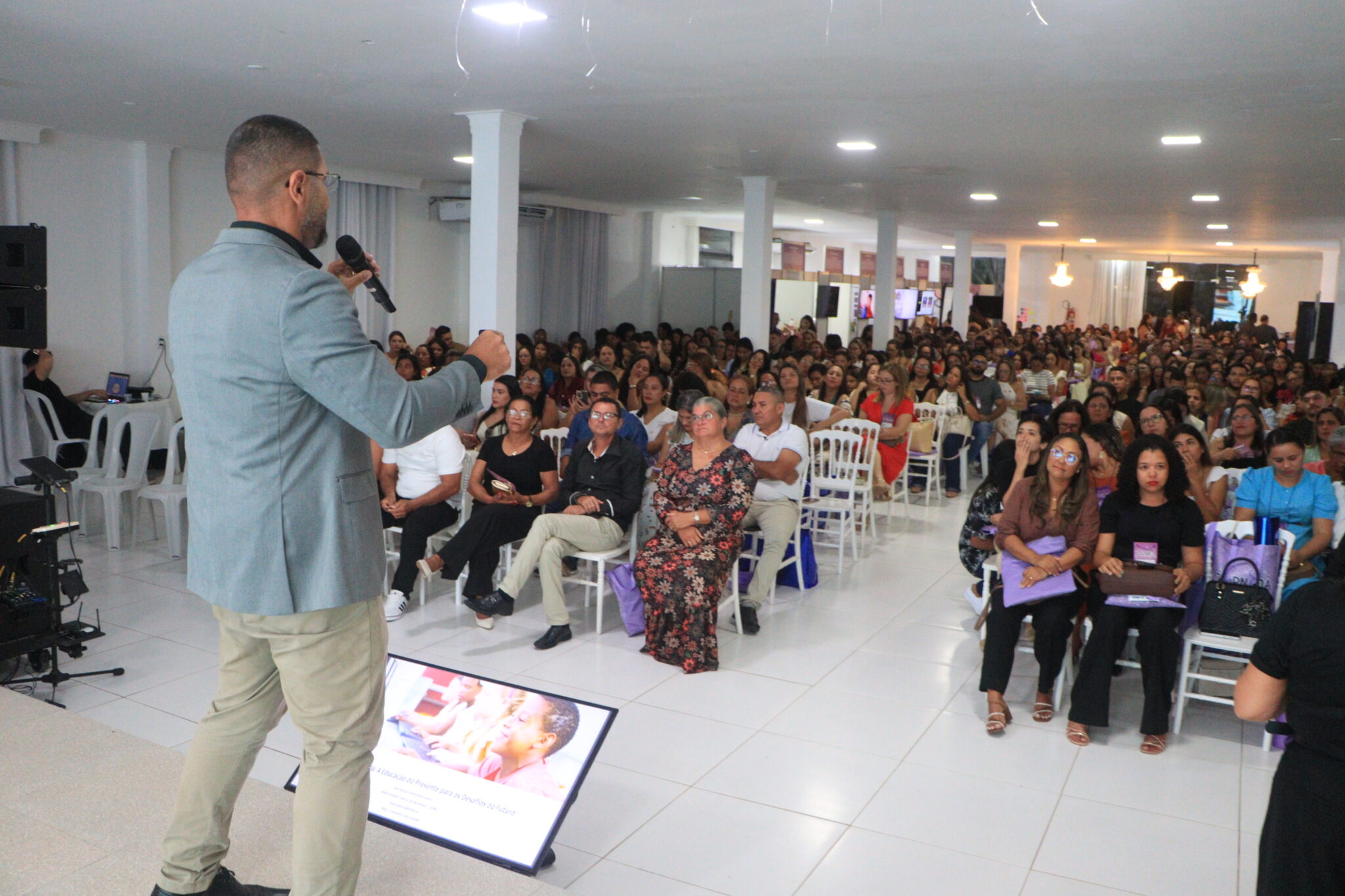 Além da programação principal, o hall de entrada do evento contou com stands das coordenações da SEMED, onde foram apresentadas ações, projetos pedagógicos e iniciativas desenvolvidas ao longo do ano, evidenciando o trabalho da rede municipal de ensino.