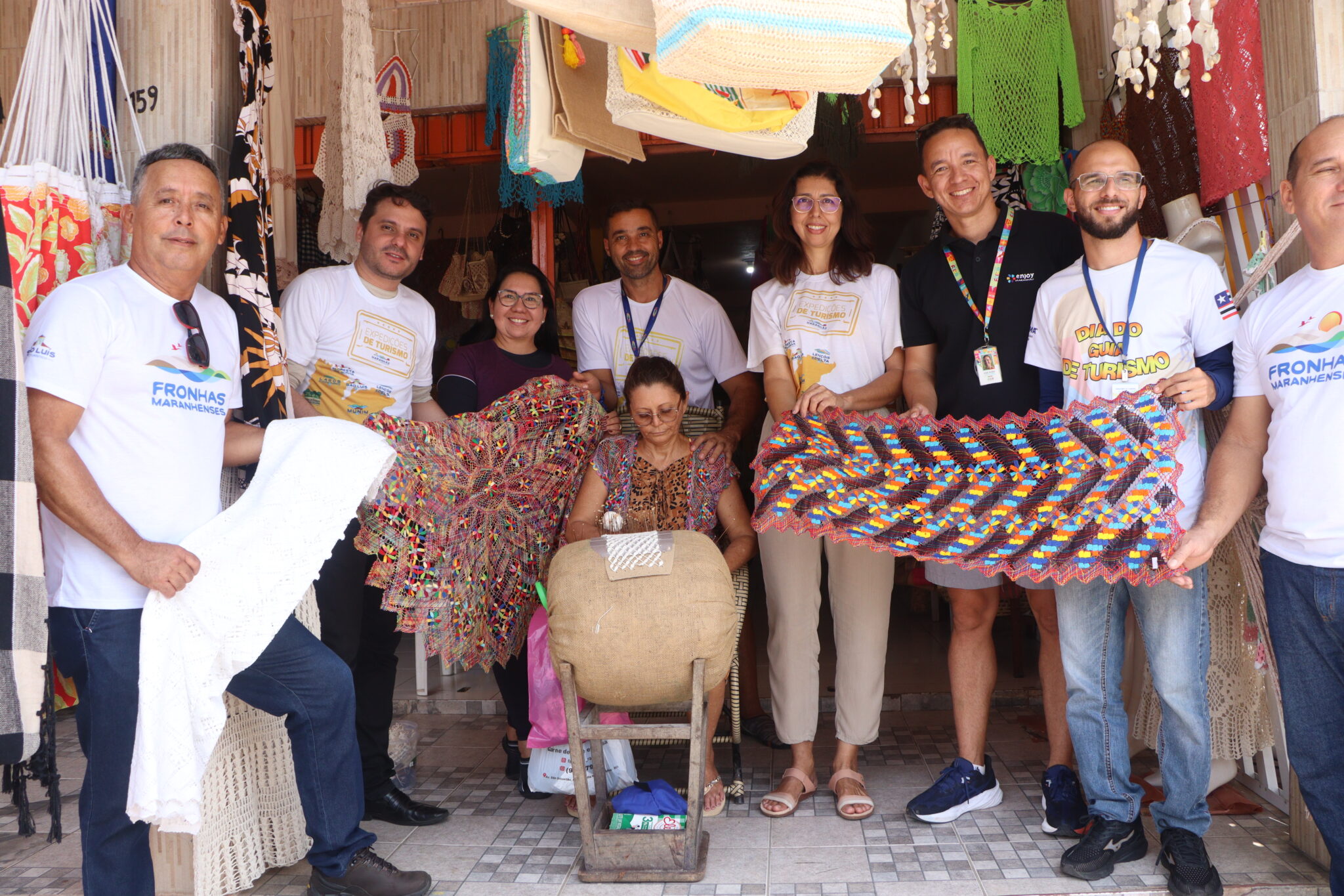 A programação seguiu para o Corredor das Rendas, um dos principais cartões-postais culturais da cidade. No local, os visitantes puderam acompanhar de perto a confecção da tradicional renda de bilro, prática artesanal transmitida de geração em geração, que segue viva até os dias atuais.